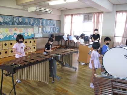 周りの楽器の音を聞きながら,リズムを合わせて合奏しました。