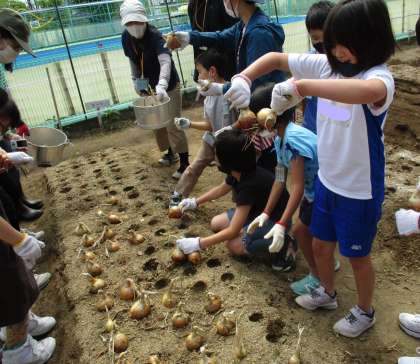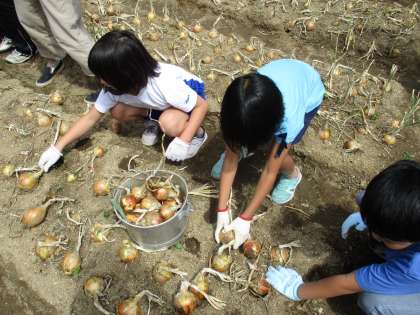 子どもたちはたくさんある玉ねぎを,夢中になって収穫していました。