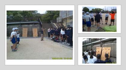 「ワンダーフォーゲル部」のみなさんは,中学校からテントや重しの入ったリュックやクライミング用の板を運んできてくださり,小学校では体験できないことをたくさん教えてくださいました。