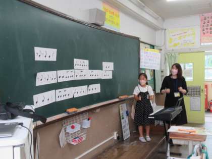みんな大好き「リズムうち」では,好きなリズムの小節を選び,組み合せてみんなで演奏しました。