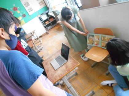 6年生は1年生のために絵本の読み聞かせの動画を作成しました。