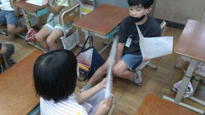次に,その絵を見せ合いながら質問し合い,その道具について詳しく考えられる活動をしました。