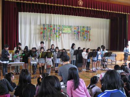 オープニングを「つばさ太鼓」とおみこしが飾り,平安騎馬隊の乗馬体験,児童や先生,樫原中学吹奏楽部等ステージの数々,いろいろなお店が出て,子どもたちの笑顔でいっぱいでした。