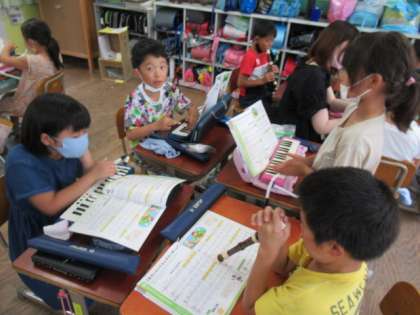 鍵盤ハーモニカとリコーダーに分かれて,グループごとに演奏しました。