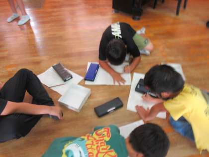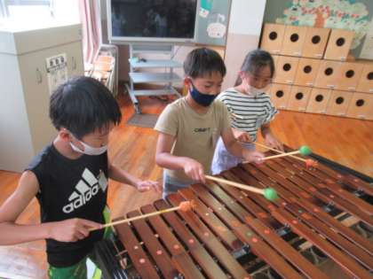 今日は問題を立てて,音楽室へ行き,色々な楽器や音の出るおもちゃを使って,ふるえ方を調べました。