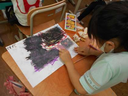先週の図画工作科の時間に,クレパスのいろいろな使い方を学習して,