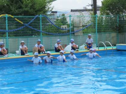 服を着たまま水に入り,「体が重たい!」などと,普段との違いを感じていました。
