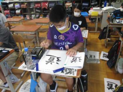 今日の字は,「しんにょう」に気を付けて書くことや「間」「バランス」に注意することを意識していました。