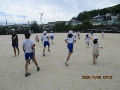 外遊びのグループは鬼ごっこ、教室遊びのグループはフルーツバスケットとだるまさんが転んだをしました。さすが6年生。