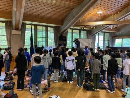 あいにくの天気ですが、子どもたちはこれこれからの活動にワクワクしています。