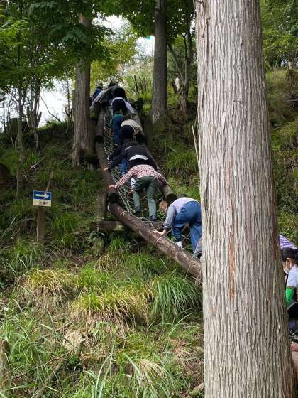 冒険の森、スタートです。みんなで声を掛け合って頑張っています。