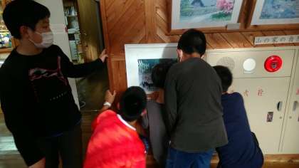 その写真が山の家の1階に飾られていて、子どもたちは担任の先生の写真を探していました。