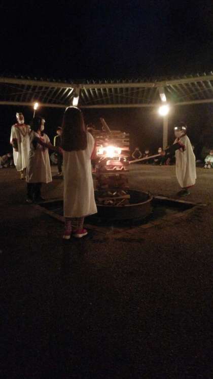 キャンプファイヤー、火の神様から三つの日をもらいました。友情、協力、感謝。この心を忘れずに明日も頑張ります!