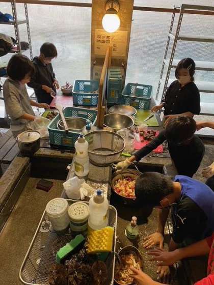 ?みんなで協力して、カレーを作っています。