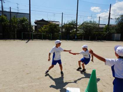 サッカーと全員リレーをして,大盛り上がりでした。