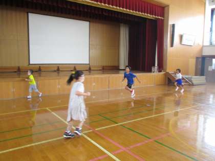 約4分間で体育館を何週走れるか、毎日走った数を数えながら行っています。
