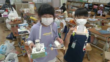 今日は、「動く」おもちゃを作りました。