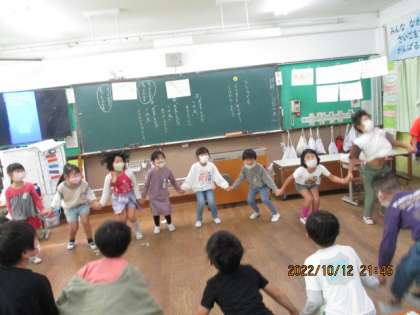 みんなで丸くなって、くじらぐもに励まされて、どんどん元気よくなっていくかけ声と共に、一生懸命ジャンプしました。