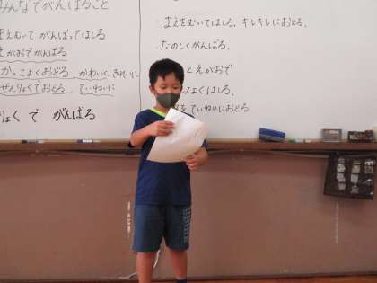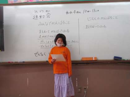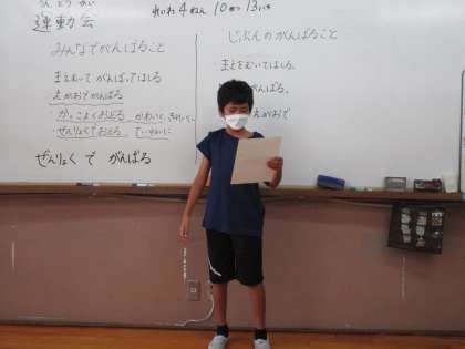 意見を出し合い「ぜんりょくでがんばる」に決めました。
