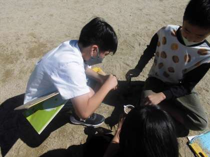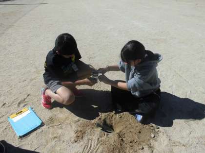 いつもの運動場の土を、れき・砂・泥に分けてみました。