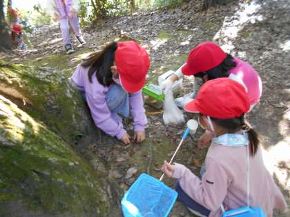 生活科の「いきものとなかよし」で生き物探しに出かけた1年生。
