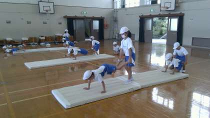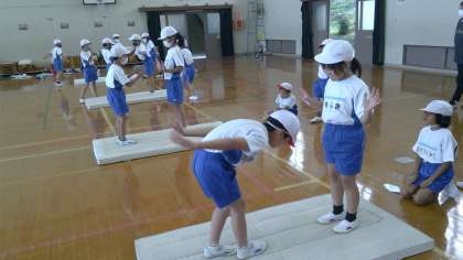 運動会後、初めての体育でした。今日は体育館で「すもうあそび」をしました。