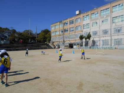 最初は、ボールを持った人は歩かない、ボールを持っていない人が走ってパスをもらいに行く、ということが、難しかったようですが、練習するにつれ、