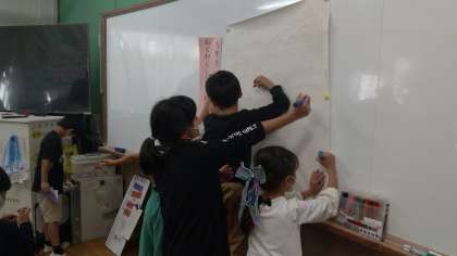 今日の5時間目は、先日話し合った5年生との遊ぶ会の準備です。