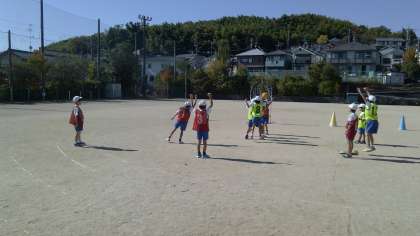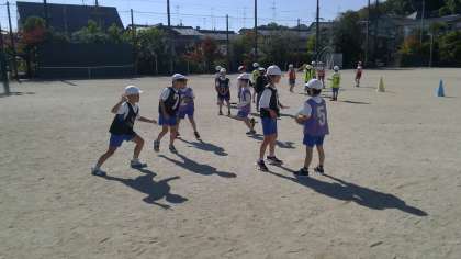運動場でのパスゲームの学習が始まりました。