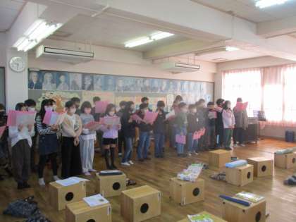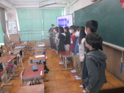本番は動画ですが、5年生の各クラスの歌声を楽しんで聞いてほしいです。
