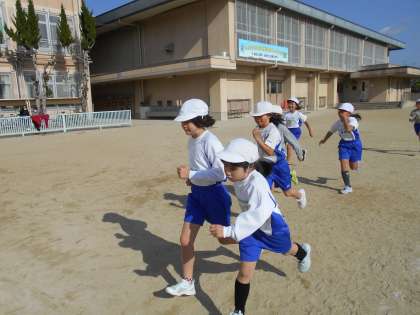 12月8日(木) 2年生 体育科 「ペース走」 1組