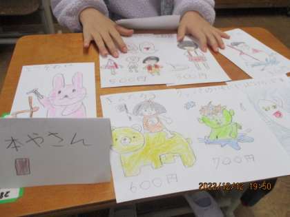 国語科「ものの名まえ」の学習で、お店屋さんごっこをしました。