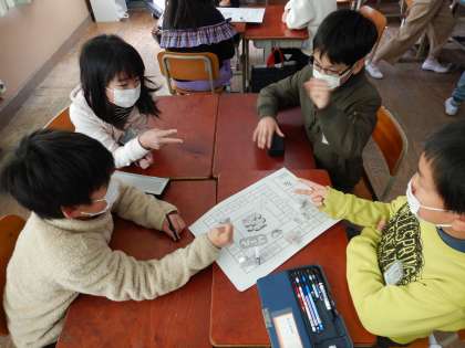 学習の時間に、すごろくを使って冬休みの思い出などを伝え合いました。