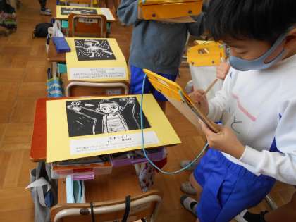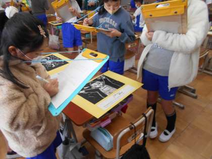 1月13日(金) 4年生 図画工作科「ほって すって 見つけて」