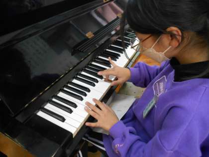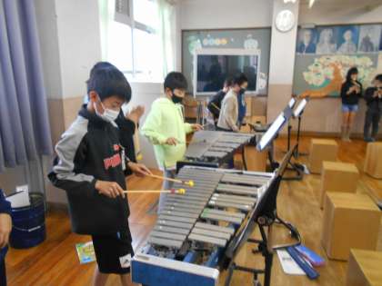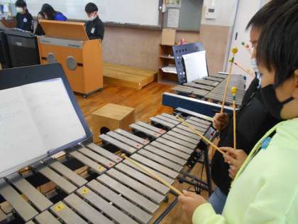 音楽室で、いろいろな楽器の音色を楽しみながら演奏しています。
