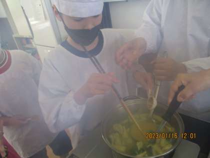 1月16日(月) コスモス学級 生活単元学習「聖護院大根のみそ汁を作ろう3」