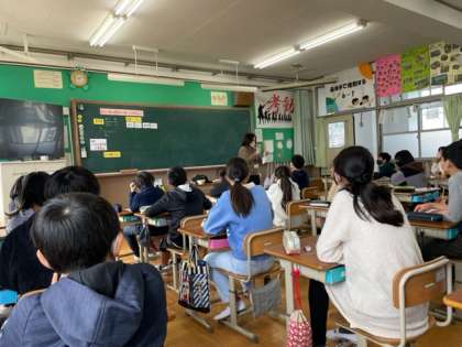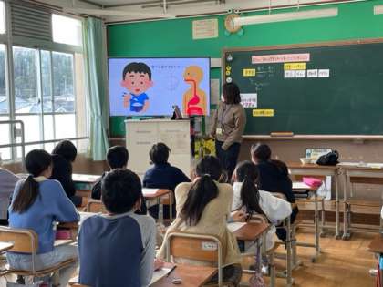 今日は栄養教諭の井上先生に食についての学習をしていただきました。