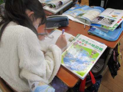 社会科の学習で日本の地形と気候から、災害について考えました。前に学習したことを思い出しながら、みんなで予想しました。