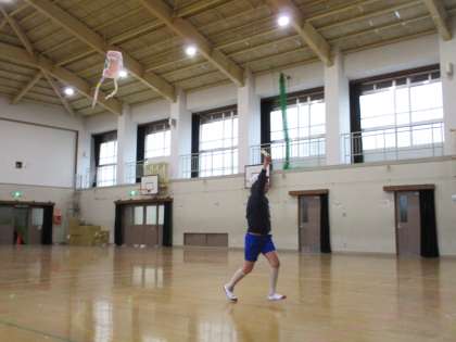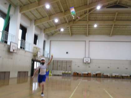 今日は、体育館で完成したたこを試しに飛ばしてみました。