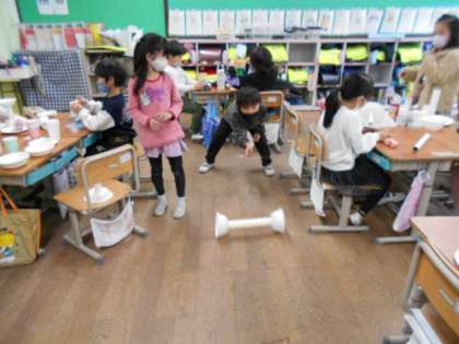 2月8日(水) 1年生 図画工作科「かみざらコロコロ」