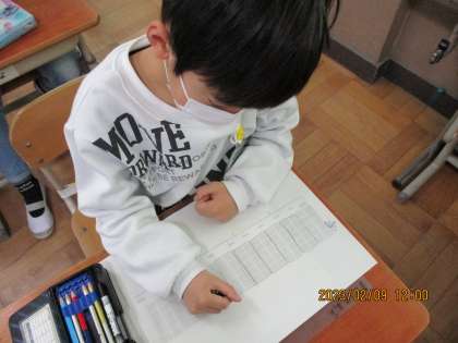 次に、たくさんの〇を数える学習をしました。「1000が100あるから、,」「一万はゼロがいくつかな?」と友だちと話しながら解決していました。