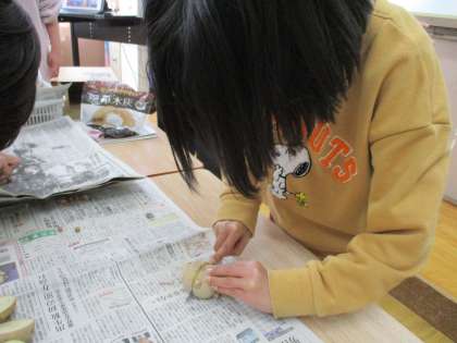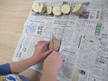わくわくファームでは、畑に植える種芋の準備をしました。
