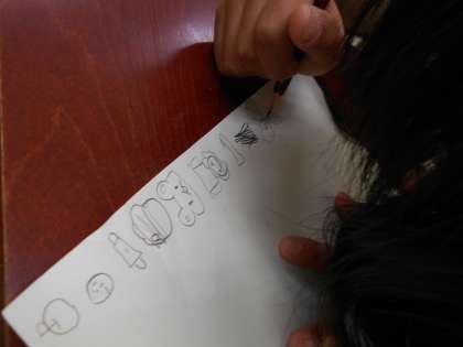 3月10日(金)4年生 休み時間「お絵描きしりとり「」