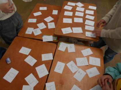 国語科の「にているかん字」の学習では、似ている漢字を集めてカルタ遊びをしました。