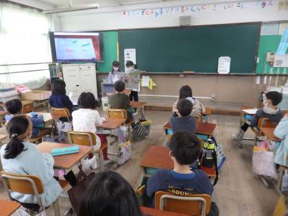 1年間、様々な係が活躍してくれていました。この日は、本係さんの読み聞かせでした。みんな、お話の世界に入り、楽しんでいる様子でした。