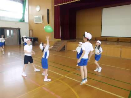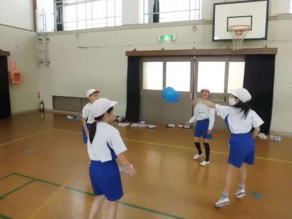 今日の体ほぐしの運動は風船バレーボールをしました。できるだけ長くラリーが続くように風船を高く上げたり、友達と声を掛け合ったりと工夫しながら、楽しんで学習をすることができました。