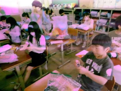 袋に様々な色の材料を入れることを楽しみました。どの色の材料を袋のどこに入れるか、材料の組み合わせはどうしようかと、考えながら入れていました。次回から本格的に「フレンド」を作っていこうと思っています。どんな友達が出来上がるのか楽しみです。
