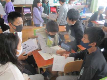 国語の学習の様子です。今日は、「聞いて考えを深めよう」の一時間目をしました。それぞれ自分が話し合いたい話題を決めてまずはやってみました。