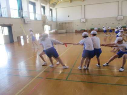 初めは早く棒をとることだけに集中していましたが、少しずつ作戦を考えだしました。安全に気を付けて楽しく工夫して学習を進めていきたいと思います。