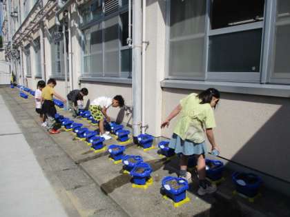 みんなで水やりの仕方を確認して、水やりをしました。